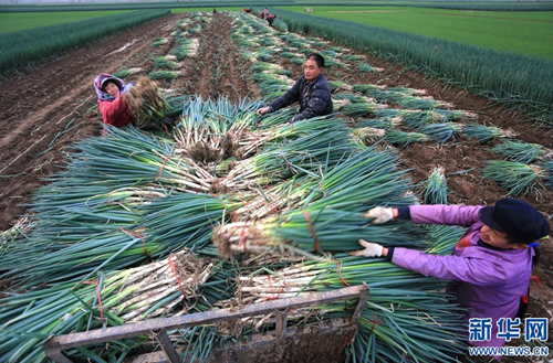 近年來,淮陽縣齊老鄉(xiāng)袁樓行政村大力發(fā)展特色種植,以“合作社+農(nóng)戶”的形式種植大蔥4000余畝,每畝增收14000余元,帶動村里貧困人口35戶124人土地入股和就業(yè),其中已有25戶脫貧。通過發(fā)展種植大蔥,該村從以前人均不足2000元的貧困村變成如今人均達到1萬多元的小康村。新華網(wǎng)發(fā)(楊正華 攝)