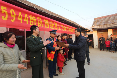 軍地聯(lián)手鑼鼓喧天送喜報(bào),功臣家人披紅戴花受尊崇??战当娔巢渴翘丶?jí)英雄黃繼光生前所在部隊(duì),今年以來(lái),先后有4名周口籍官兵在各類重大演訓(xùn)任務(wù)中立功受獎(jiǎng),為了使軍人的榮譽(yù)向官兵家庭拓展、向全社會(huì)輻射,該部決定開展“功耀門楣送喜報(bào)進(jìn)家門”活動(dòng),利用12月14日、15日兩天時(shí)間,選派專人成立“報(bào)喜”小分隊(duì),為我市4名官兵家庭送去立功喜報(bào)和慰問(wèn)金。