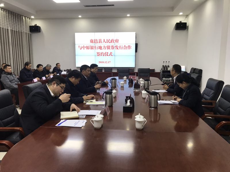 12月17日,鹿邑縣人民政府與中原銀行地方債券發(fā)行合作簽約儀式舉行。縣委常委、常務(wù)副縣長(zhǎng)陸志杰,老子學(xué)院黨組副書記、交通局局長(zhǎng)王初立,中原銀行周口分行黨委副書記、副行長(zhǎng)周朝陽出席簽約儀式??h財(cái)政局、教體局、住建局、林業(yè)局、發(fā)改委、老子文化產(chǎn)業(yè)園及投資公司等相關(guān)單位負(fù)責(zé)同志參加會(huì)議。