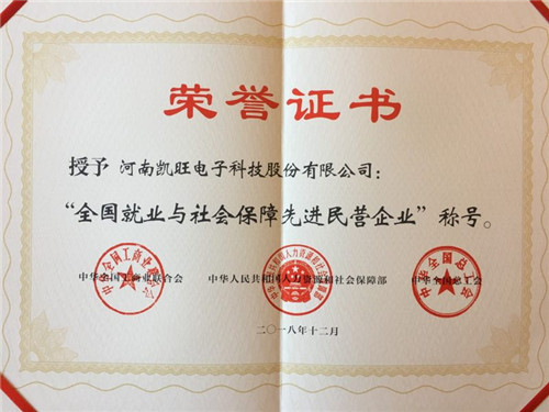 12月20日上午,記者獲悉在全國召開的就業(yè)與社會保障先進(jìn)民營企業(yè)暨關(guān)愛員工實現(xiàn)雙贏表彰大會上,我市民營企業(yè)河南凱旺電子科技股份有限公司榮獲“全國就業(yè)與社會保障先進(jìn)民營企業(yè)”稱號,中華全國工商業(yè)聯(lián)合會、中華人民共和國人力資源和社會保障部、中華全國總工會為該企業(yè)頒發(fā)了榮譽(yù)證書。