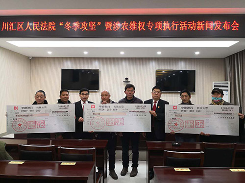 12月26日下午,川匯區(qū)人民法院召開“冬季攻堅”暨涉農維權專項活動新聞發(fā)布會。周口日報等新聞媒體和川匯區(qū)法院執(zhí)行警務局40余名干警參加了座談會。發(fā)布會現場,共為三名農名工代表發(fā)放自行款21.5萬元。