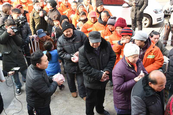 在“羊肉哥”的愛(ài)心影響下,部分愛(ài)心企業(yè)紛紛加入到關(guān)愛(ài)環(huán)衛(wèi)工、殘疾人活動(dòng)中?;顒?dòng)現(xiàn)場(chǎng),尉氏縣某蔬菜專業(yè)種植合作社總經(jīng)理給大家捐助了救心菜露酒。鄭州某食品有限公司給大家捐助了水餃和湯圓?;顒?dòng)現(xiàn)場(chǎng),“餃子哥”王孝力、“投幣哥”鄭景軍、“粽子哥”劉明廣、“霹靂哥”武德正,鄭州市第三屆道德模范、鄭州愛(ài)心導(dǎo)盲犬關(guān)愛(ài)中心關(guān)驪,鄭州市第四屆道德模范張升華、周口人鄭能量公益聯(lián)盟秘書(shū)長(zhǎng)楊正華、金水區(qū)紅十字黨員助殘志愿者服務(wù)隊(duì)、河南省紅十字結(jié)伴同行脫貧路志愿服務(wù)總隊(duì)、河南省紅十字結(jié)伴同行脫貧路志愿服務(wù)總隊(duì)等公益人士和團(tuán)隊(duì)紛紛為愛(ài)心活動(dòng)助力。