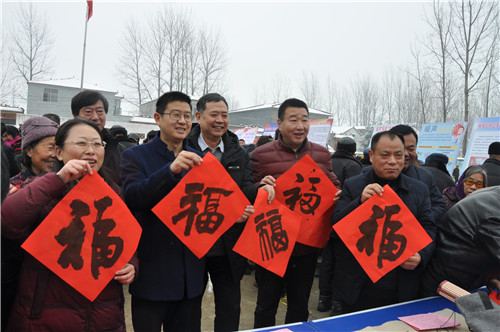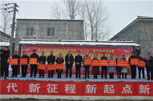 1月10日上午,雪花飛舞,天寒地凍。然而,商水縣袁老鄉(xiāng)王屯行政村文化大院暖 意融融,千人歡聚,同樂(lè)同慶,共享黨的溫暖。由縣委宣傳部、縣文明辦、縣文廣局 等部門(mén)聯(lián)合舉辦的商水縣2019年文化、科技、衛(wèi)生“三下鄉(xiāng)”啟動(dòng)儀式在這里舉行。
