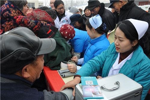 正在排隊(duì)量血壓的馬河村村民馬長(zhǎng)運(yùn)說(shuō):“我今年70多歲,血壓有點(diǎn)高,聽(tīng)說(shuō)這 里有義診活動(dòng),一大早便來(lái)這里等待了?!?/p>