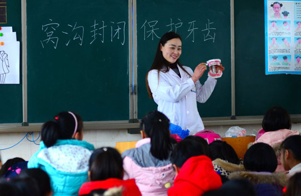 為加強(qiáng)口腔疾病健康教育和健康促進(jìn)工作,提高兒童口腔疾病防治知識知曉率,近日,鄲城縣疾控中心組織口腔專業(yè)技術(shù)人員,到第三實(shí)驗小學(xué)開展“鄲城縣健康口腔助成長口腔健康教育活動”和“鄲城縣兒童口腔疾病綜合干預(yù)項目進(jìn)校園活動”。在活動現(xiàn)場,口腔醫(yī)師為二年級學(xué)生上了三場生動的口腔健康教育課,詳細(xì)講解口腔疾病防治知識。