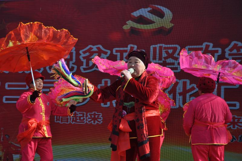 隨著基層公共文化服務建設的不斷深入、村級文化娛樂陣地的逐步改善,農村群眾逐漸成為文化建設的主角。進入臘月,商水縣各鄉(xiāng)鎮(zhèn)群眾紛紛自發(fā)組織多姿多彩的文化娛樂活動,紅紅火火迎新春,一場場豐富多彩的文化活動讓群眾的精神生活越來越豐富。圖為商水縣一位年過六旬的老人在說快板書《十九大精神放光芒》。 記者 付永奇 攝