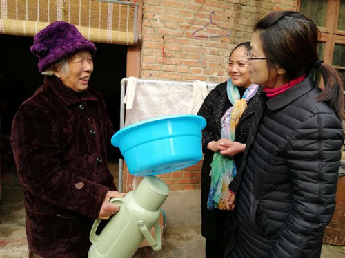 一個水瓶、一幅年畫足以溫暖一個村莊……1月26日,淮陽縣婦聯(lián)迅速落實縣委、縣政府“大走訪、大宣傳、大慰問”工作部署,駐村工作隊長張健帶領第一書記、工作隊員和村兩委干部對大連鄉(xiāng)代廟村挨門逐戶進行走訪慰問,把黨和政府的關懷送到尋常百姓家。
