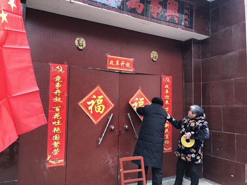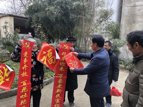 據(jù)了解,當(dāng)天下午時(shí)莊村黨支部訂制的3000多套春聯(lián),免費(fèi)贈(zèng)給448戶村民。記者看到,這些春聯(lián)的內(nèi)容都是承載著黨和政府的關(guān)懷,有的是歌頌改革開(kāi)放的,有的是幸福報(bào)黨恩的。該村村民朱在靈領(lǐng)到春聯(lián)后立刻把春聯(lián)拿回家,他將門(mén)頭擦干凈后把春聯(lián)貼了上去。在門(mén)口懸掛著的國(guó)旗的襯托下,顯得格外喜慶?!按謇锩赓M(fèi)發(fā)這種帶黨徽的春聯(lián)已經(jīng)第三年了,這種春聯(lián)傳遞了黨的好聲音,推動(dòng)了群眾對(duì)黨的擁護(hù),現(xiàn)在村民的精神面貌也貌煥然一新。”朱在靈高興地說(shuō)。