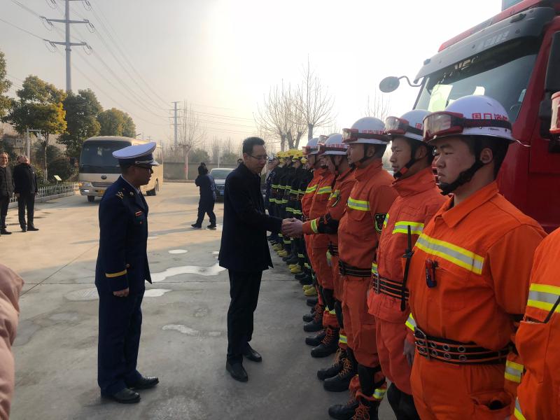 在開發(fā)區(qū)消防大隊,王文峰與每一位消防隊員握手,詳細詢問他們的工作、生活、學習情況。王文峰指出,2018年,開發(fā)區(qū)消防大隊牢記“聽黨指揮,能打勝仗,作風優(yōu)良”,努力訓練,敢于戰(zhàn)斗,面對一系列急難險重任務能夠拉得出、打得贏,為保障人民群眾生命財產(chǎn)安全作出了重要貢獻。新的一年,全市消防救援隊伍要繼續(xù)發(fā)揚特別能吃苦、特別能戰(zhàn)斗的優(yōu)良傳統(tǒng),加強應急救援綜合能力建設,真正發(fā)揮好應急救援主力軍和國家隊的職能作用。