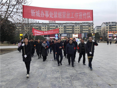 會后,黨工委書記張玉杰、辦事處主任王一博帶隊組織全體干部舉著橫幅,帶著紅袖標(biāo)徒步10多公里,到鹿鼎建材城、農(nóng)貿(mào)市場、世紀(jì)廣場、丁老家、張?zhí)枠?、羅堂社區(qū)等重點區(qū)域進行宣傳。