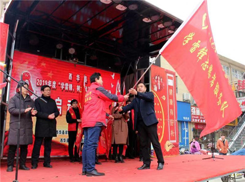 9時30分,啟動儀式開始。縣委組織部有關(guān)領(lǐng)導發(fā)表了熱情洋溢的致辭;縣非公黨工委書記、縣工商和質(zhì)監(jiān)局局長李永民向西華縣無人機產(chǎn)業(yè)園、西華縣真愛婦產(chǎn)科醫(yī)院、西華縣城市公共交通有限公司等7家非公企業(yè)黨支部學雷鋒志愿服務(wù)隊代表授旗,并動員廣大非公企業(yè)黨支部、個私經(jīng)營者開展形式多樣、豐富多彩的學雷鋒志愿服務(wù)活動;東方國際商業(yè)有限公司黨支部黨員志愿者代表作了情真意切地表態(tài)發(fā)言。最后,縣委宣傳部有關(guān)領(lǐng)導宣布活動正式啟動。