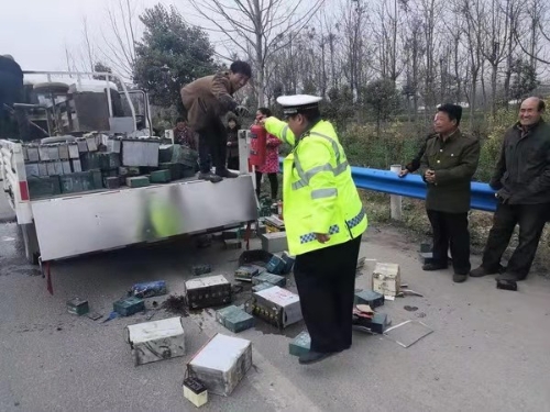 3月13日下午14時45分,鄲城縣交警大隊治超中隊民警張鑫帶隊在汲冢萬樓卡點執(zhí)勤時,一名女司機將車輛??吭谌f樓卡點,急急忙忙下車向張鑫求助,稱在萬樓執(zhí)勤卡點東2公里路北處,一輛拉有電瓶的貨車因電瓶連線導(dǎo)致后車廂著火,司機和同行人員急得在路邊直哭。