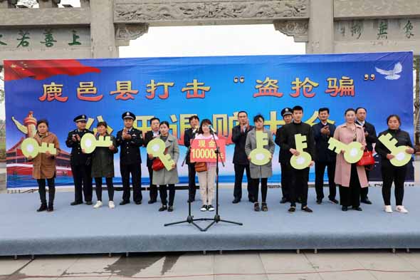 4月25日上午,鹿邑縣召開(kāi)打擊“盜搶騙”專項(xiàng)行動(dòng)公開(kāi)退贓大會(huì)??h委常委、政法委書記侯自峰出席會(huì)議并講話??h公、檢、法、司等有關(guān)部門負(fù)責(zé)人與群眾代表近300人參加退贓大會(huì)。