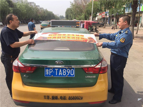 由區(qū)五城聯(lián)創(chuàng)指揮部牽頭,組織區(qū)城管局、區(qū)交通運輸局等職能部門,利用城管執(zhí)法車輛、環(huán)衛(wèi)保潔車輛、交通執(zhí)法車等,統(tǒng)一張貼宣傳標(biāo)語進(jìn)行宣傳。日出動各類宣傳車輛109輛。區(qū)五城聯(lián)創(chuàng)指揮部辦公室會同區(qū)交通運輸局在中心城區(qū)出租車上統(tǒng)一張貼創(chuàng)衛(wèi)宣傳標(biāo)語和禁煙標(biāo)志,累計張貼出租車600余輛。多種載體宣傳。利用車體標(biāo)語、車載音響、大喇叭、出租車頂燈等載體,大密度宣傳創(chuàng)衛(wèi)標(biāo)語口號,播放統(tǒng)一灌制的創(chuàng)衛(wèi)宣傳音頻。