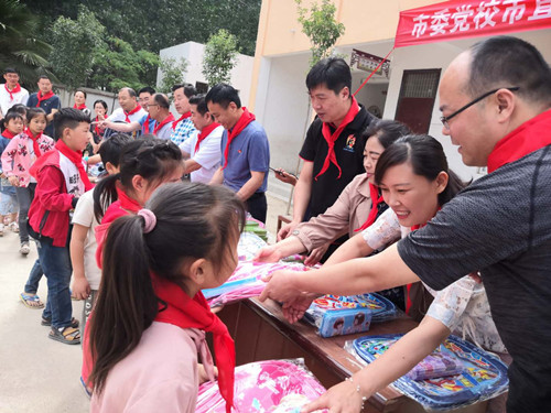 5月29日上午,2019年度市委黨校春季市直科長班20多名學員代表,在該校副校長高鵬帶領下,來到西華縣大王莊鄉(xiāng)東孫莊小學開展愛心助學活動,為48名小學生送去圖書、書包、文具盒等“六一”禮包。