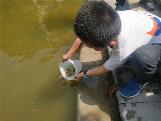 此次活動,共有50多個(gè)家庭參與,放養(yǎng)魚苗2000余尾,發(fā)放糖果120多顆。在歡聲笑語中,培養(yǎng)和喚醒了孩子們的衛(wèi)生、環(huán)保意識;教育和規(guī)范了孩子們和家長的良好生活習(xí)慣;提倡和引導(dǎo)了健康、衛(wèi)生、環(huán)保生活理念,形成人人自覺維護(hù)環(huán)境衛(wèi)生,人人參與衛(wèi)生創(chuàng)建的良好氛圍。
