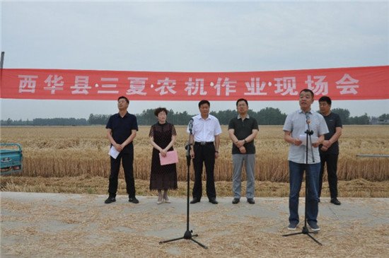 “麥浪滾滾閃金光,秣馬厲兵迎三夏”。值此三夏大忙到來(lái)之際,6月1日上午,西華縣農(nóng)機(jī)局在東王營(yíng)鄉(xiāng)東王營(yíng)村舉辦三夏農(nóng)機(jī)作業(yè)現(xiàn)場(chǎng)會(huì),周口市農(nóng)機(jī)局黨組書(shū)記、局長(zhǎng)劉偉,西華縣委副書(shū)記、政法委書(shū)記程維崢,縣政府副縣長(zhǎng)毛茹,東王營(yíng)鄉(xiāng)黨委、政府主要負(fù)責(zé)同志,各鄉(xiāng)鎮(zhèn)、辦事處分管農(nóng)業(yè)農(nóng)村工作副職,東王營(yíng)鄉(xiāng)部分村支部書(shū)記,縣農(nóng)機(jī)局全體干部職工和部分農(nóng)機(jī)合作社理事長(zhǎng)等共80余人參加了演示會(huì)。