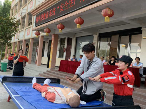 活動現場,消防教官為同學們講解了防火安全的重要性,火災的預防和救助,演示了滅火器的使用方法;西華縣紅十字會救護師耿佳佳、姚華杰二人為同學們現場生動講解演示“珍愛生命、預防溺水”的生動安全教育課,讓同學了解溺水的危害性,做好有效預防溺水的重要性,演示發(fā)生溺水怎么辦及對溺水者如何做胸外心臟按壓,同學們認真聆聽和學習,學會了判斷呼吸心跳停止、按壓手法、按壓位置、打開氣道方法、判斷呼吸心跳是否恢復等急救技能。同學還掌握了溺水急救基本標準:打開氣道、人工呼吸、胸外按壓。