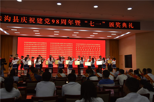 頒獎典禮共表彰優(yōu)秀共產(chǎn)黨員99名、優(yōu)秀黨務(wù)工作者60名、先進黨組織73個。少先隊員為優(yōu)秀代表頒獎。