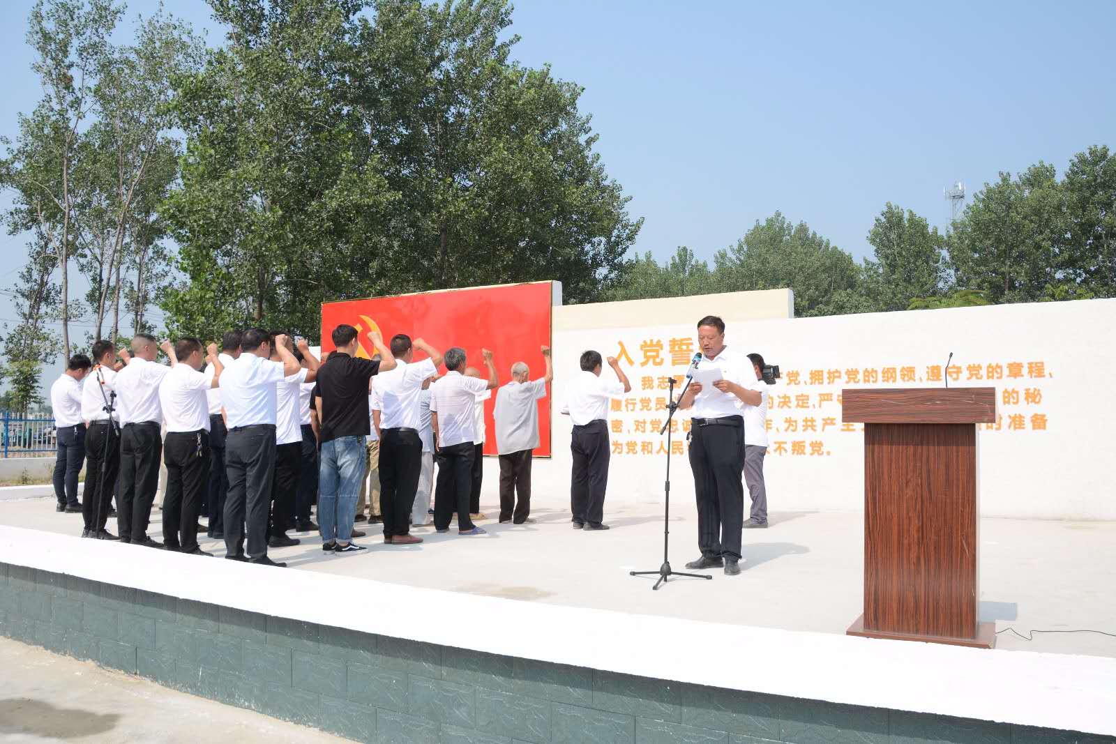 “我志愿加入中國(guó)共產(chǎn)黨,擁護(hù)黨的綱領(lǐng),遵守黨的章程……”升國(guó)旗儀式結(jié)束后,由紀(jì)莊支部書(shū)記李國(guó)喜領(lǐng)誓,全體黨員面對(duì)鮮紅黨旗,胸前佩戴黨徽,排著整齊的隊(duì)列,高高舉起右手,再次向黨作出了莊嚴(yán)地承諾,重溫入黨誓言,聲聲入耳,句句入心。
