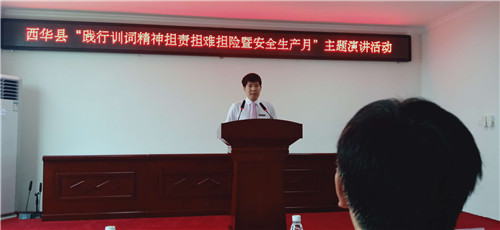 今年6月是全國第18個“安全生產(chǎn)月”,為牢固樹立安全發(fā)展理念,增強全民安全生產(chǎn)意識。6月28日下午,西華縣舉辦“踐行訓詞精神擔責擔難擔險暨安全生產(chǎn)月”主題演講比賽,來自應急管理系統(tǒng)的15名選手齊聚賽場,以一個個生動的故事和深入人心的道理,深刻闡述了“安全”的內(nèi)涵。