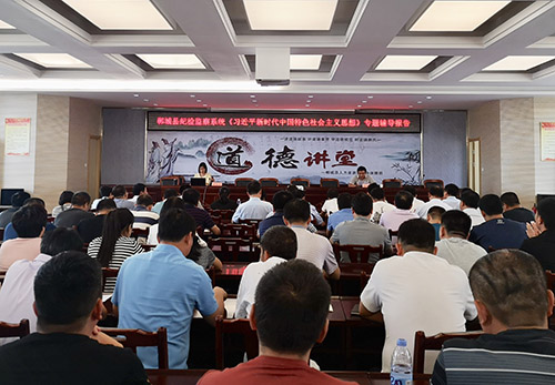 為進一步推動鄲城縣紀(jì)檢監(jiān)察干部深入學(xué)習(xí)貫徹黨的十九大精神,自覺用“習(xí)近平新時代中國特色社會主義思想”武裝頭腦、指導(dǎo)實踐、推動工作,按照全縣紀(jì)檢監(jiān)察系統(tǒng)“鑄鐵軍、塑形象、再出發(fā)”活動計劃安排,6月28日,鄲城縣紀(jì)委邀請縣委黨校教員鄭紅霞為全縣紀(jì)檢監(jiān)察干部做了一場“習(xí)近平新時代中國特色社會主義思想”專題輔導(dǎo)報告。