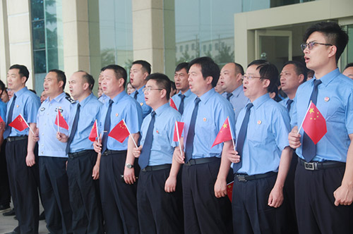 “沒有共產(chǎn)黨就沒有新中國(guó),沒有共產(chǎn)黨就沒有新中國(guó),共產(chǎn)黨,辛勞為民族,共產(chǎn)黨他一心救中國(guó)……”音樂響起那一刻,西華縣檢察院全體干警莊嚴(yán)站立,他們內(nèi)心澎湃,他們?yōu)樽约菏侵腥A兒女的一員而自豪。