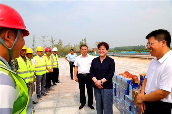炎炎夏日,酷熱難當(dāng)。張穎波一行為高鐵施工人員送來了總價值約2萬元藿香正氣口服液、太極水等藥品和西瓜,并送來了扶溝人民對施工人員戰(zhàn)酷暑、保進(jìn)度的親切慰問。該項目負(fù)責(zé)人感動地說,“張縣長對高鐵項目時刻牽掛于心。過年時陪著工人吃餃子,三伏天送‘清涼’,大家心里很溫暖?!痹撠?fù)責(zé)人表示,要把溫暖傳導(dǎo)給一線施工人員,化作工作的動力,加班加點干,保質(zhì)保量干,確保扶溝人民高鐵夢如期夢圓。