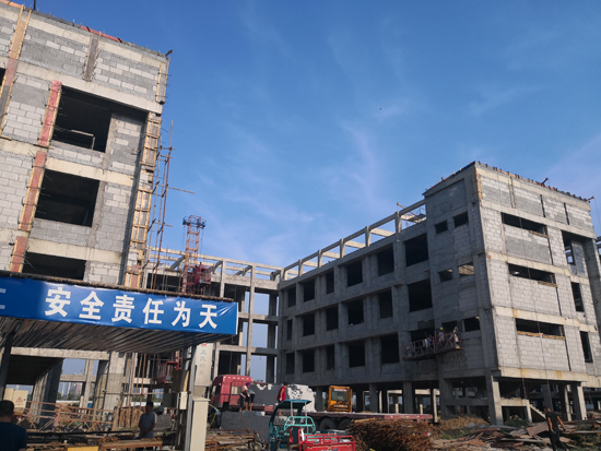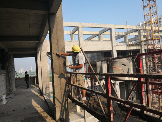 當(dāng)日上午,記者在施工現(xiàn)場看到,雖然天氣炎熱,但是每項(xiàng)工程都進(jìn)展有序,部分已經(jīng)封頂?shù)臉欠空谶M(jìn)行后續(xù)施工,未封頂?shù)臉欠恳舱诰o張施工中,整個施工現(xiàn)場電鉆聲、切割聲此起彼伏,一派熱烈的施工景象。