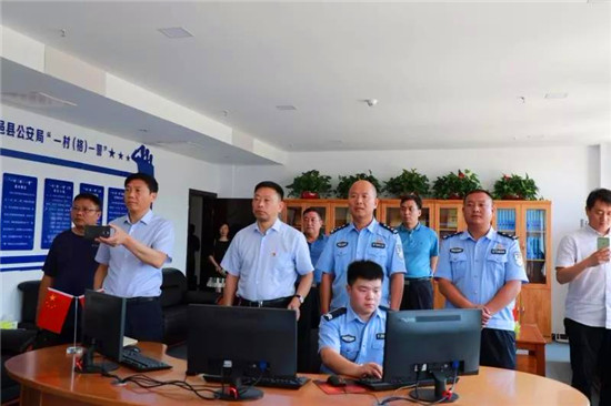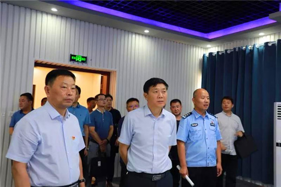 7月21日,平頂山市葉縣縣委常委、政法委書記王旭,縣政府黨組成員、公安局局長李根太帶領(lǐng)公安、發(fā)改、財政等相關(guān)部門負責人,前來鹿邑縣考察學習“千村萬星”視頻監(jiān)控雪亮工程建設及“一村(格)一警”工作開展情況。鹿邑縣委副書記、政法委書記許四軍陪同參觀。
