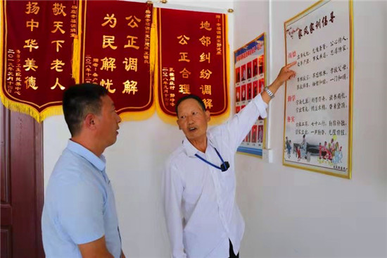 阡陌芬芳,綠意盎然。7月22日上午,記者在楊廟鄉(xiāng)“幸福調解室”見到了正要外出為村民調解矛盾糾紛的王錦良,老人雖然年過七旬,但思維清晰,說話聲音洪亮,一講起糾紛調解,話匣子便一下子打開了。