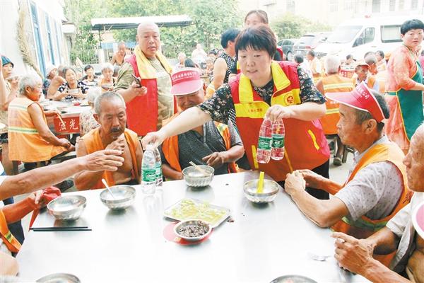 為幫助環(huán)衛(wèi)工做好防暑降溫工作,7月23日,太康縣總工會到該縣“愛心粥屋”看望慰問環(huán)衛(wèi)工人,并捐贈1萬元現(xiàn)金和價值6000元的毛巾、礦泉水。圖為該縣總工會志愿者為環(huán)衛(wèi)工發(fā)放礦泉水。