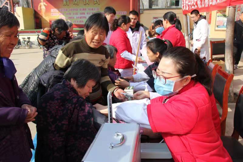據(jù)了解,康學智老兩口年事已高,多病纏身,屬于典型的因病致貧、因病返貧的貧困戶。周口淮海醫(yī)院每周都會抽調醫(yī)生、護士組成醫(yī)療小組,攜帶診療器械進村,為包括康學智老兩口在內的3戶分包貧困戶進行健康服務。
