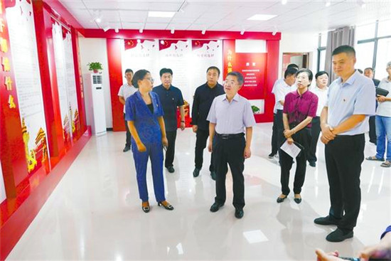 皇甫立新首先來到槐店回族鎮(zhèn)海樓社區(qū)。海樓社區(qū)位于縣城中心,是全縣政治經(jīng)濟文化中心。走進社區(qū),路兩旁紅旗飄飄,新時代、新思想、新目標(biāo)、新征程等具有時代特色的宣傳畫繪制在兩邊的墻壁上。社區(qū)廣場上“百村綜合治理辦公室”的牌子特別醒目,社區(qū)辦公室有關(guān)百村綜合治理的規(guī)章制度一應(yīng)俱全。皇甫立新對海樓社區(qū)的工作給予充分肯定,并就工作中存在的問題給予指正,要求社區(qū)黨支部突出建好、管好、用好村委黨員會議室,突出主題,唱響主旋律。