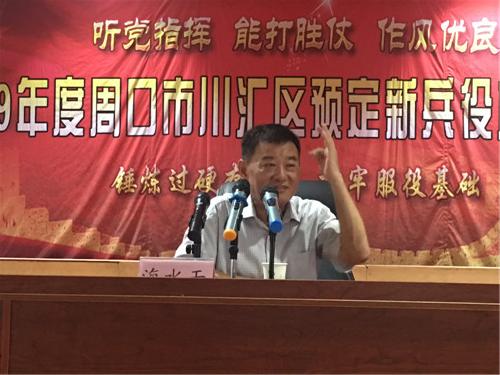 講到動(dòng)情處,海水干的眼里噙滿淚花。臺(tái)下掌聲雷動(dòng),表達(dá)著對(duì)老英雄的無限尊崇。海水干激勵(lì)廣大預(yù)定新兵到部隊(duì)后刻苦訓(xùn)練,不怕苦累,為周口爭光添彩,早日把立功受獎(jiǎng)。