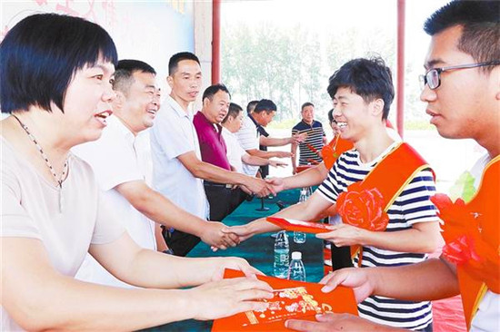 近日,市城鄉(xiāng)一體化示范區(qū)搬口辦事處曾樓行政村文化大院里,鑼鼓喧天,喜氣洋洋,熱鬧非凡。原來是村民在為該村大學新生舉辦歡送會,同時,該村黨支部還為這些大學新生發(fā)放了助學金。據(jù)了解,曾樓行政村有3000多人,2019年共有27人金榜題名,其中14人考入本科院校,13人考入專科院校。記者 張勁松 攝