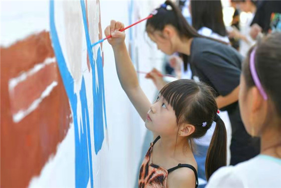 活動現(xiàn)場,參與者們從設(shè)計構(gòu)圖到勾勒輪廓,從調(diào)制顏料到搭配色彩,每一個步驟、每一道工序都一絲不茍。大家圍繞“禮贊新中國 歌頌新時代”這一主題,在近百米長的墻面上認(rèn)真作畫,只見現(xiàn)場參與者工筆勾線、揮毫上色,經(jīng)過一個多小時的創(chuàng)作,“社會主義核心價值觀”“中國夢”“市民文明公約”等愛國元素躍然墻上……內(nèi)容豐富、形式多樣,一幅幅作品色彩明快、質(zhì)樸純?nèi)唬浞终故玖藭嬛驹刚邆儗ψ鎳图亦l(xiāng)的熱愛,對藝術(shù)的追求和對美好生活的向往,宣傳了中國傳統(tǒng)書畫藝術(shù),提升了新時代文化自信,為該縣美術(shù)愛好者帶來了一場藝術(shù)盛宴。