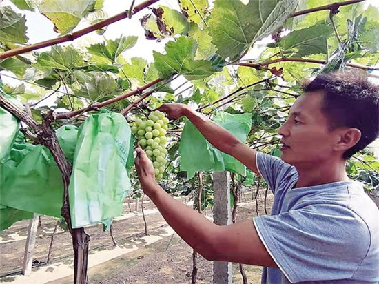 在楊樓村,轉(zhuǎn)業(yè)返鄉(xiāng)的李玉柱在土地上也做出了大文章。李玉柱在部隊(duì)服役15年,本可按政策安排工作。但是,他有著強(qiáng)烈的創(chuàng)業(yè)熱情。三年前,在鄉(xiāng)村兩級(jí)組織的支持下,他租用村集體土地,投入100多萬(wàn)元搞葡萄種植。目前,葡萄進(jìn)入豐產(chǎn)期,李玉柱每年都可實(shí)現(xiàn)收入20多萬(wàn)元。