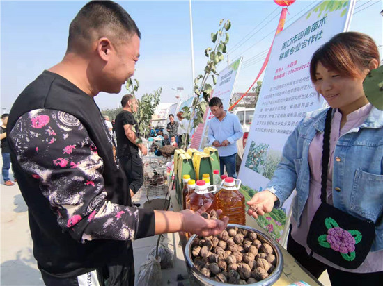 一問(wèn)一答間,爽朗的笑聲響徹節(jié)日上空,農(nóng)民們喜笑顏開(kāi),傳遞出濃濃的幸福。大棗、黑木耳、小麥粉、粉條等西華縣各具特色的農(nóng)產(chǎn)品紛紛亮相,除了展示各自的“增收實(shí)力”,也展示出幾年來(lái)發(fā)展農(nóng)業(yè)特色經(jīng)濟(jì)的豐碩成果?!罢钆_(tái),農(nóng)民唱戲,每年一度的農(nóng)民豐收節(jié)既是農(nóng)民歡樂(lè)的節(jié)日,也是展銷農(nóng)產(chǎn)品的紐帶平臺(tái),今天我們奉母鎮(zhèn)展示了本地原生態(tài)粉條和純糧美酒,希望借助豐收節(jié)機(jī)遇,拓寬銷路實(shí)現(xiàn)農(nóng)民增收。”西華縣奉母鎮(zhèn)黨委書(shū)記陳鵬告訴記者。