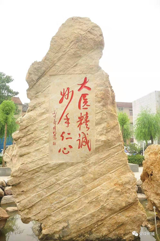 他雖然離開了鄲城,但一直關(guān)注著醫(yī)院的發(fā)展。醫(yī)院領(lǐng)導(dǎo)也多次到上??赐?,向他匯報(bào)醫(yī)院近年來的發(fā)展情況。2016年,鄲城縣人民醫(yī)院院長(zhǎng)于健到上海看望他,聽到醫(yī)院近年來快速健康的發(fā)展進(jìn)程,周老先生非常高興,欣然提筆寫下“大醫(yī)精誠(chéng),妙手仁心”八個(gè)大字。周老先生的題詞被雕刻在一尊文化石上,座落在醫(yī)院文化廣場(chǎng)上。