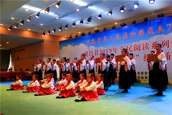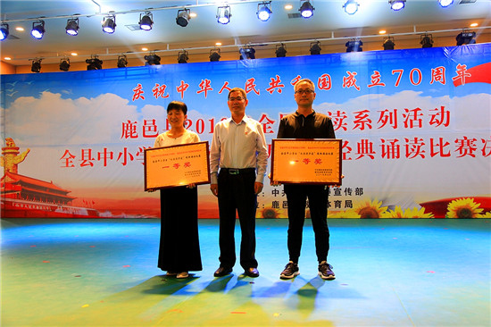 9月27日,由中共鹿邑縣委宣傳部主辦、鹿邑縣教育體育局承辦的慶祝中華人民共和國成立70周年、鹿邑縣2019年全民閱讀系列活動——全縣中小學生“歡樂進萬家”經(jīng)典誦讀比賽(決賽)在弘德中學報告廳舉行,在初賽中嶄露頭角的十六個單位的近800名師生參加了決賽。