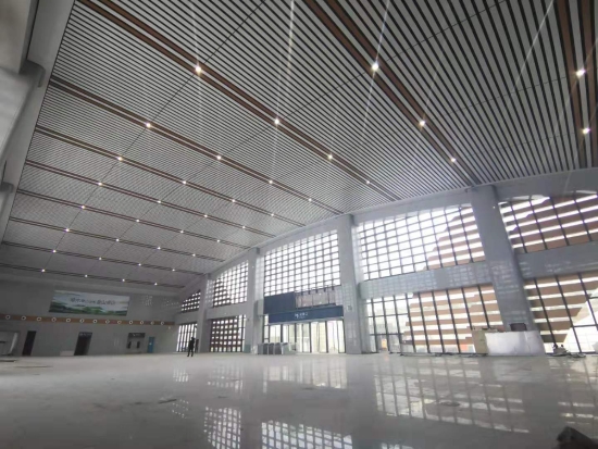 走進(jìn)總建筑面積3980平方米、高18米的站房,寬敞、明亮、溫馨的裝飾風(fēng)格端莊大方,又給人一種時(shí)尚現(xiàn)代的感覺。站房共兩層,一層中間為候車廳,兩側(cè)分別為出站廳及售票廳;二層主要布置設(shè)備及辦公用房。