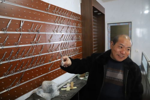 “我也是從小就外出,一直在江蘇蘇州發(fā)展,做刀剪十幾年了?,F(xiàn)在家鄉(xiāng)環(huán)境好,回來(lái)發(fā)展比在南方還有前途?!苯衲?9歲的陳政治老家是虎崗鄉(xiāng)陳莊村。被虎崗鄉(xiāng)黨委政府的誠(chéng)意所感動(dòng),他很樂(lè)意回鄉(xiāng)發(fā)展,因?yàn)榉孔鈨r(jià)格低、務(wù)工人員穩(wěn)定,營(yíng)商環(huán)境又好,所以他帶著自己的外甥楊亞杰和技術(shù)團(tuán)隊(duì)回到老家鄲城,還能助力家鄉(xiāng)經(jīng)濟(jì)發(fā)展。陳政治說(shuō),他的廠子所生產(chǎn)的東升、jack、亞寶等品牌刀剪全部銷(xiāo)往全國(guó)高檔理發(fā)店,產(chǎn)品供不應(yīng)求。像這樣的高檔刀剪生產(chǎn)廠家,在中原地帶極少。剛投產(chǎn)幾個(gè)月,他已經(jīng)接到了來(lái)自韓國(guó)、日本等地的訂單。