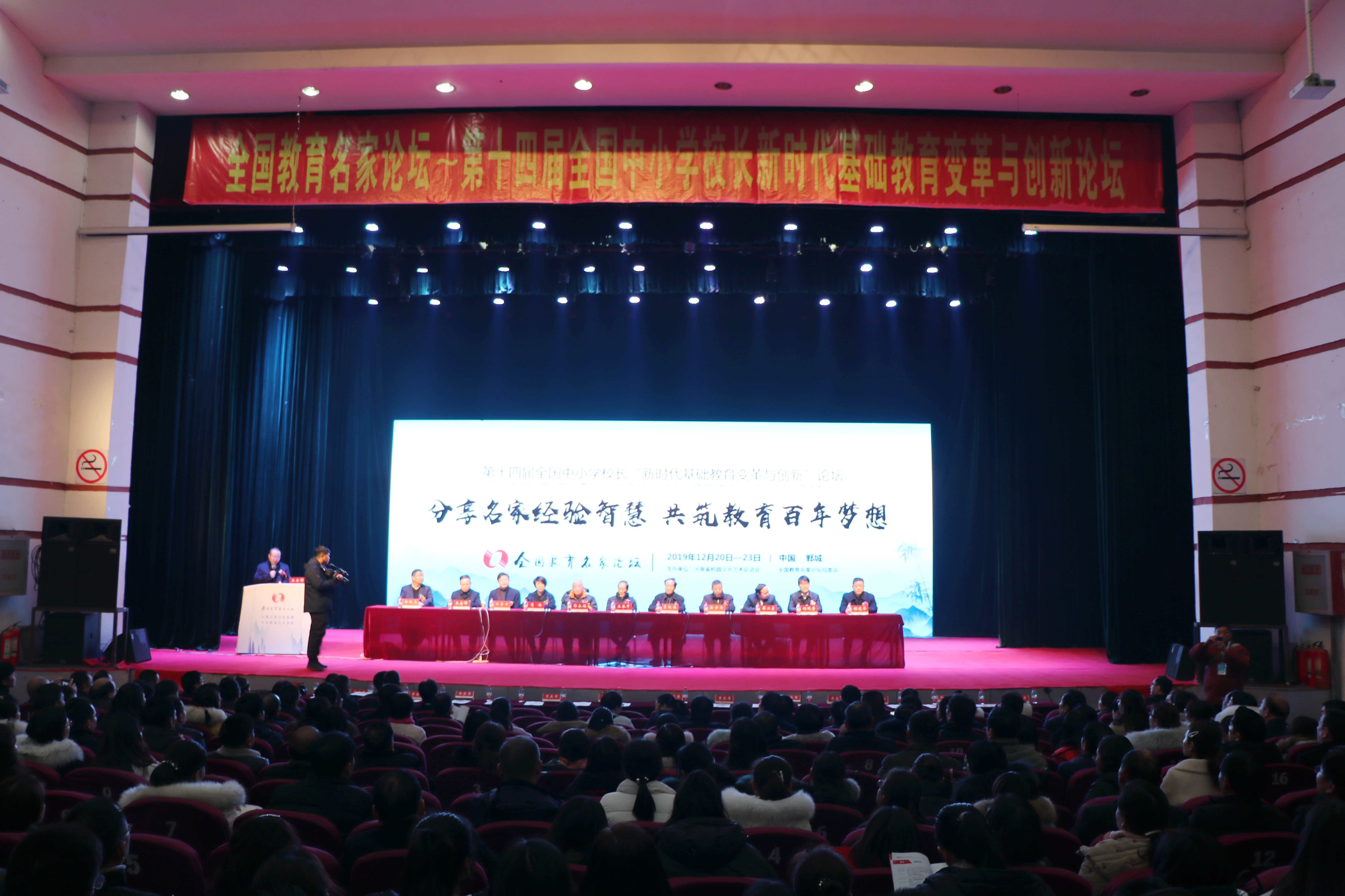 12月21日,全國(guó)教育名家論壇-第十四屆全國(guó)中小學(xué)校長(zhǎng)“新時(shí)代基礎(chǔ)教育變革與創(chuàng)新”培訓(xùn)會(huì)在鄲城縣人民會(huì)堂開幕。本次論壇以“教育的堅(jiān)守與展望”為主題,由全國(guó)教育名家論壇、河南省校園文化藝術(shù)促進(jìn)會(huì)共同主辦、鄲城縣教體局承辦。