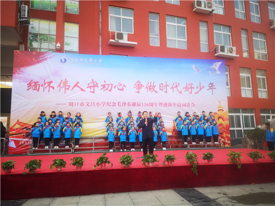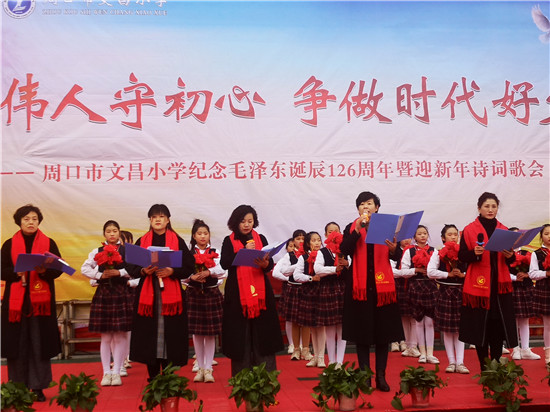 12月26日,是毛澤東誕辰126周年紀(jì)念日。為深切緬懷偉大領(lǐng)袖毛澤東,弘揚(yáng)革命精神、民族精神和愛國主義精神,文昌小學(xué)舉行了紀(jì)念毛澤東誕辰126周年暨迎新年詩詞歌會(huì)。