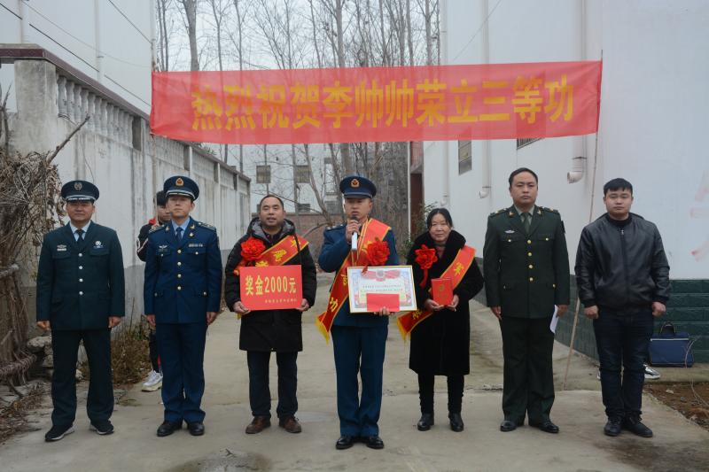 一人參軍,全家光榮;一人立功,全家榮耀。2020年1月2日,沈丘縣洪山鎮(zhèn)廟山李村聽說黃繼光生前部隊(duì)要來送喜報(bào),榮立三等功的李帥帥一家特地選擇在村口迎接這份榮譽(yù)。接過大紅喜報(bào),李帥帥的母親喜極而泣:活了幾十年了,送兒子當(dāng)兵也有12余年,今天是我對“軍屬光榮”四個字感觸最深的一次,也是最光榮的一天,沾了兒子的光了……