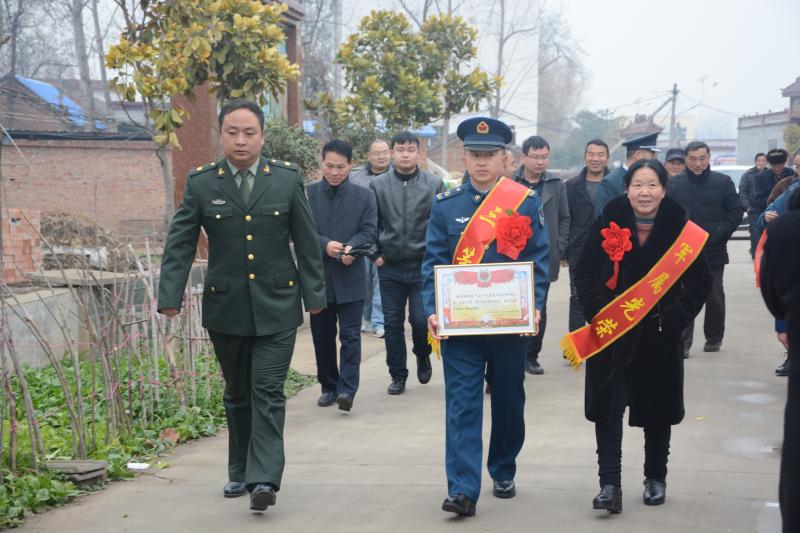 12月下旬,黃繼光生前所在部隊(duì)與沈丘縣人武部、沈丘縣退役軍人事務(wù)局共同商榷,為了使軍人的榮譽(yù)向官兵家庭拓展、向全社會輻射,在新年前開展一次功章勵我強(qiáng)軍志、立功喜報(bào)送到家活動,選派專人成立報(bào)喜小分隊(duì),為立功授獎的官兵家庭送去立功喜報(bào)和慰問金。