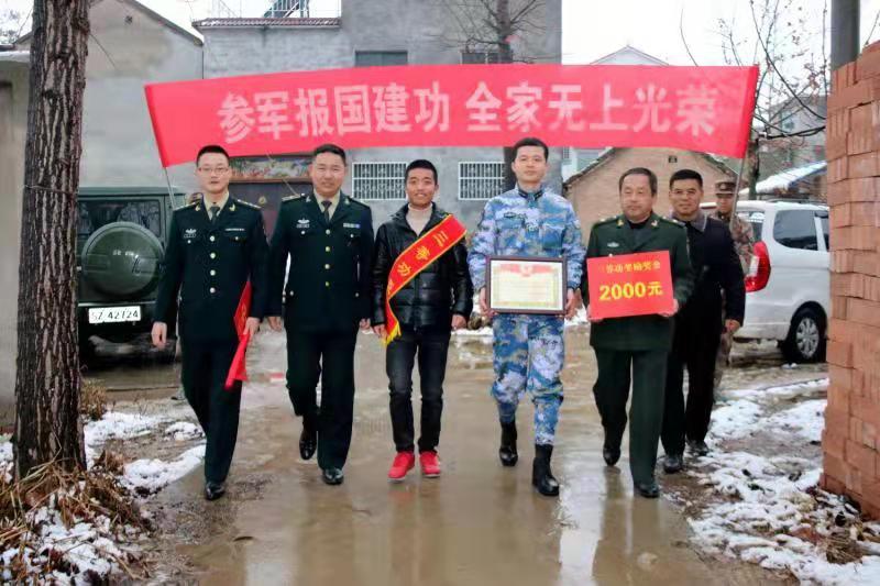 就在這樣一個瑞雪初降喜盼豐年的日子,穆店鄉(xiāng)四大王村熱鬧非凡。鹿邑縣人武部、退役軍人事務(wù)局、穆店鄉(xiāng)政府帶領(lǐng)96766部隊人員,專程來到從該村入伍的三級士官李龍家中,送上三等功喜報和慰問金。面對鄉(xiāng)親們羨慕的目光,李龍的母親陳秀英興高采烈地說:“俺要叮囑兒子繼續(xù)在部隊好好干,爭取再立新功!”
