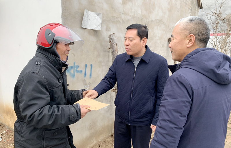 在牛莊和梁莊行政村,趙紅建在寧平鎮(zhèn)鎮(zhèn)長(zhǎng)王樹勤的陪同下,看望慰問了困難群眾、困難老黨員,送去了慰問金,向他們致以新春的問候和美好的祝福。