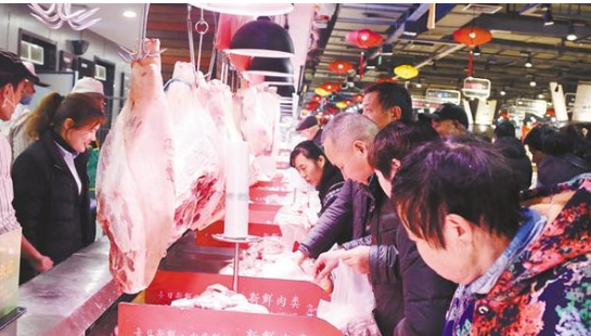 1月18日上午,在中心城區(qū)萬果園超市內(nèi)的2020年春節(jié)政府平價(jià)豬肉專柜前,擠滿了購(gòu)買豬肉的市民。春節(jié)將至,為保障節(jié)日市場(chǎng)供應(yīng),我市從1月17日至23日的早上9時(shí)至下午4時(shí)在中心城區(qū)20家超市將投放300噸應(yīng)急保障協(xié)議豬肉,供市民購(gòu)買。